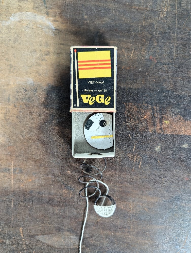 The matchboxes are fixed in this arrangement (they don't close) and have a small hole in the back, to hang on a tack in the wall.